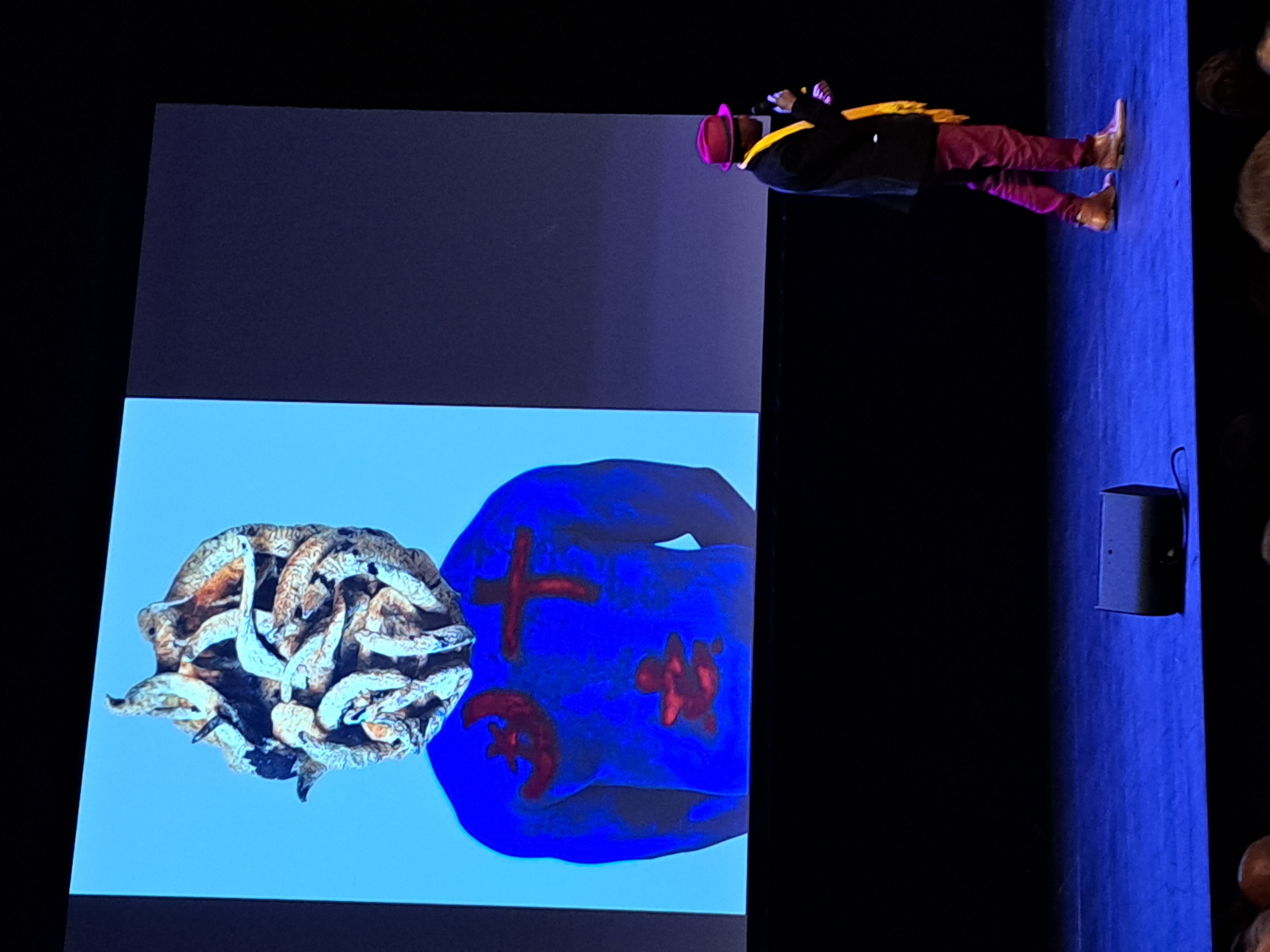 Pour cette soirée de présentation de saison, la salle est presque pleine, têtes blanches et têtes blondes s’y mêlent… un peu ! Les artistes associés sont nombreux ce soir pour présenter leurs collaborations avec le théâtre suisse, au plateau ou en vidéo… Et l’on meurt déjà d’envie de voir ces spectacles variés, ancrés dans l’époque complexe que l’on vit ; ici, les artistes n’ont pas peur d’aborder les sujets graves, des guerres qui font rage aux questions de société telle l’euthanasie… Le tout sans excès de pathos et avec la fervente volonté d’attirer tous les publics, jeunes et vieux, racisés ou non, locaux et internationaux.